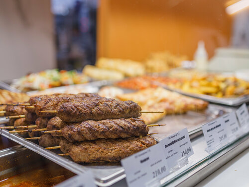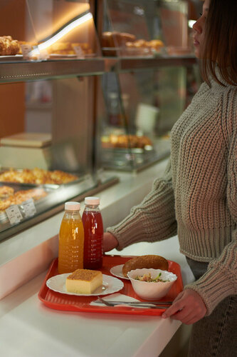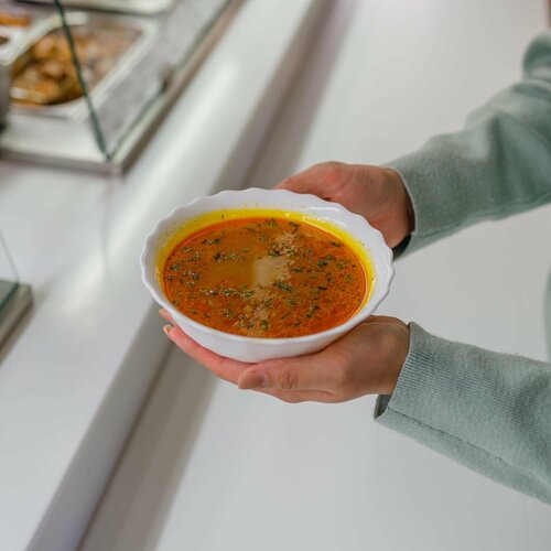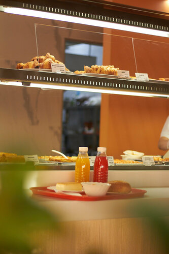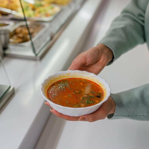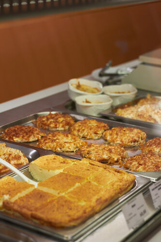 Разнообразное меню. Супы, выпечка, десерты. Ожидания нет, всё меню на выдаче. Берешь на поднос и на кассу.